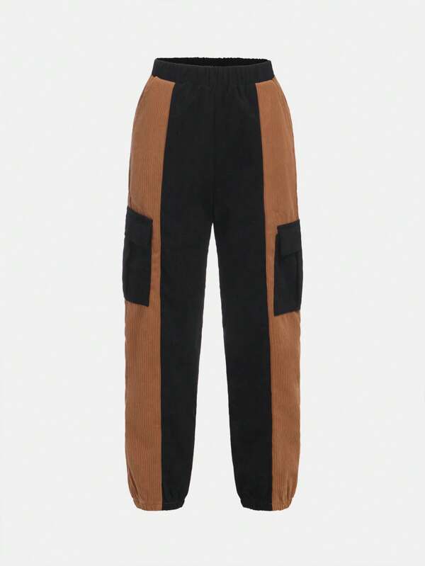 SHEIN Kids EVRYDAY Tween Boy Two Tone Flap Pocket Side Cargo Pants