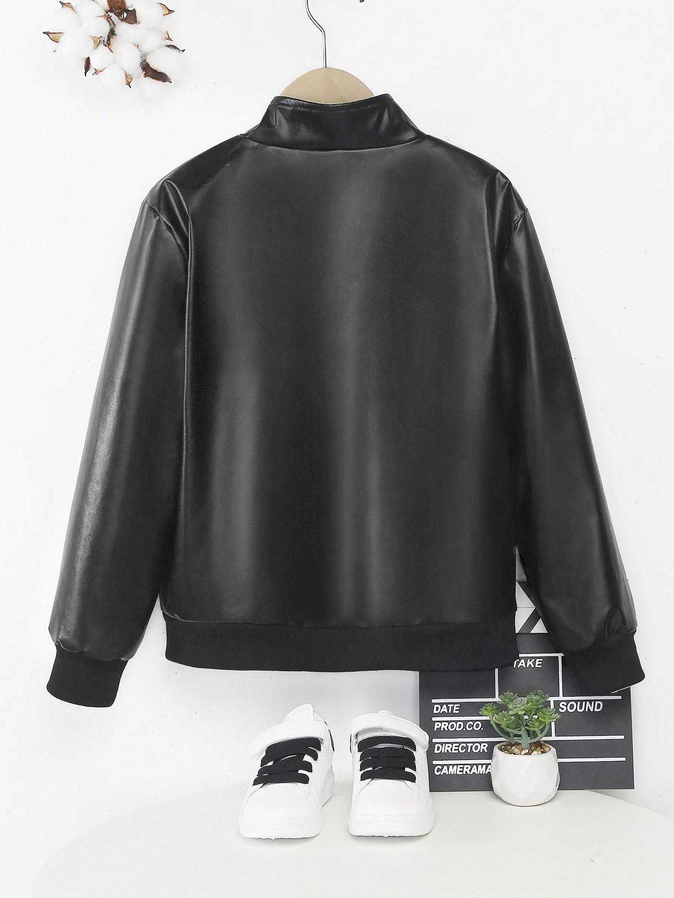 SHEIN Tween Boy Zip Up PU Leather Jacket