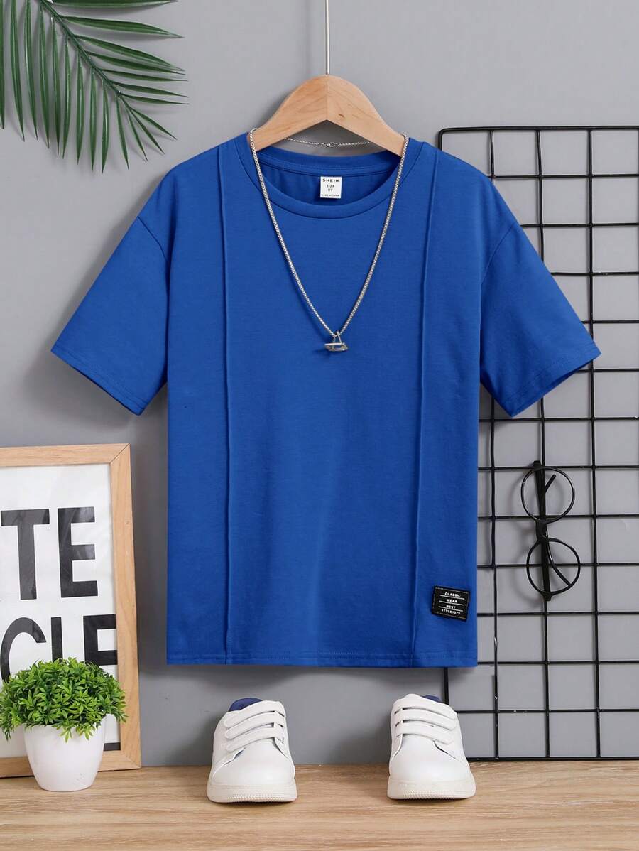 SHEIN Tween Boys' Comfortable Solid Casual T-Shirt