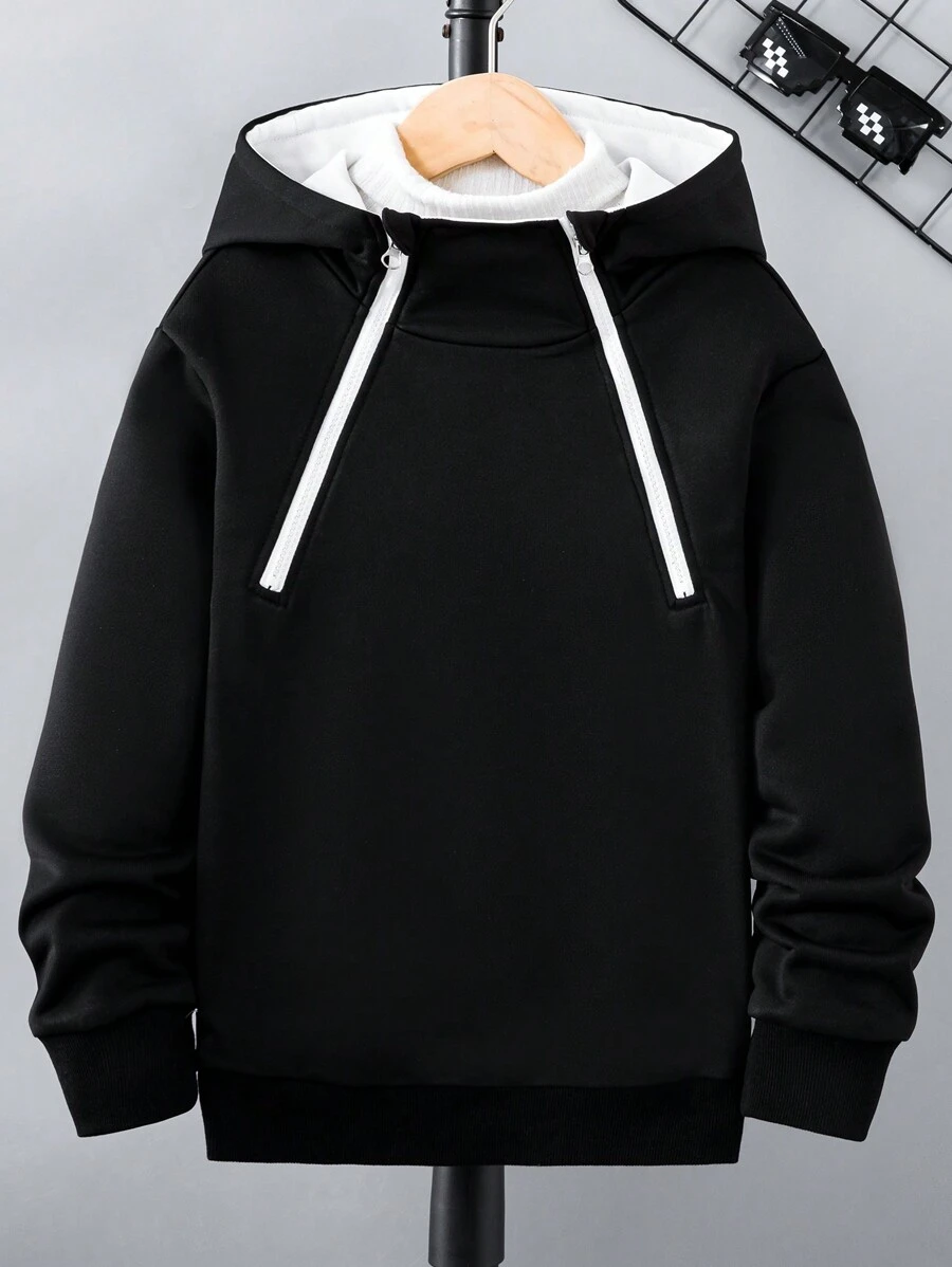 SHEIN Tween Boys' Hooded Zipper Design Sweatshirt