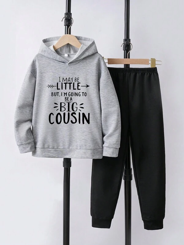 Tween Boys' Slogan Printed Long Sleeve Hoodie And Long Pants Sports 2pcs Outfit