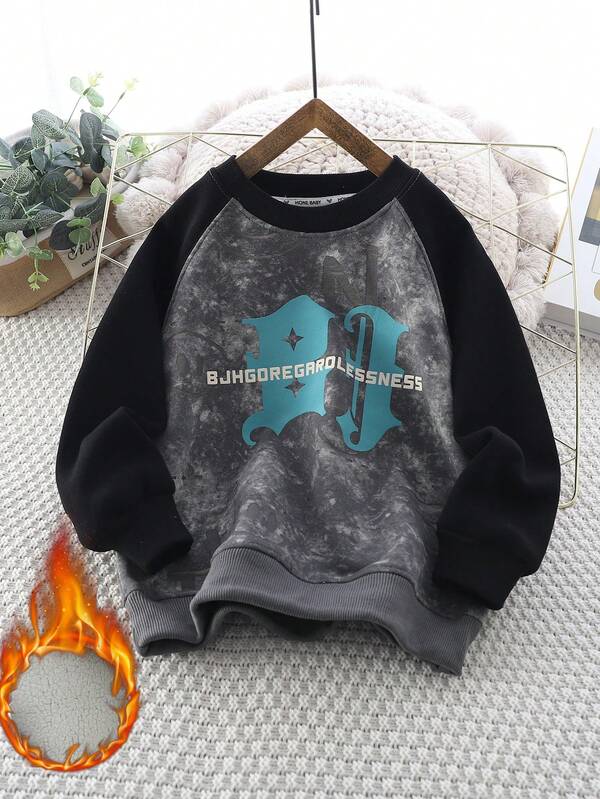 Tween Boys Autumn And Winter Thermal Lined Warm Contrasting Letter Print Sweatshirt