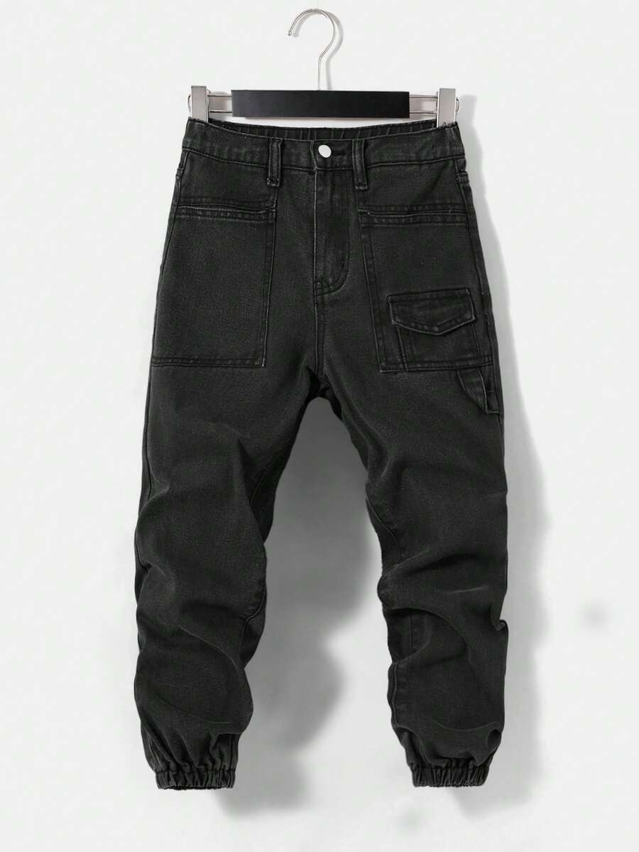 SHEIN Tween Boys Flap Pocket Cargo Jeans