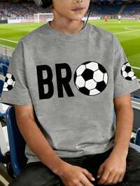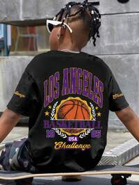 LittlSHEIN Bolty Tween Boy Letter Print Washed Short Sleeve T-Shirt, Casual College Style, Comfortable, Fashionable, Versatile, Cute & Soft, Suitable For Daily Wear, School, Outings, Sports, Festivals And Parties #6 Bestseller
