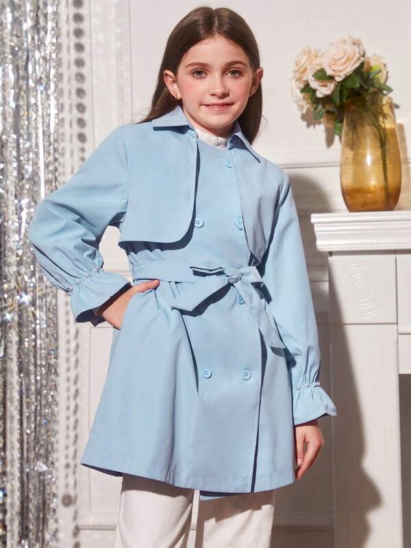 SHEIN Tween Girl 1pc Double Breasted Belted Trench Coat