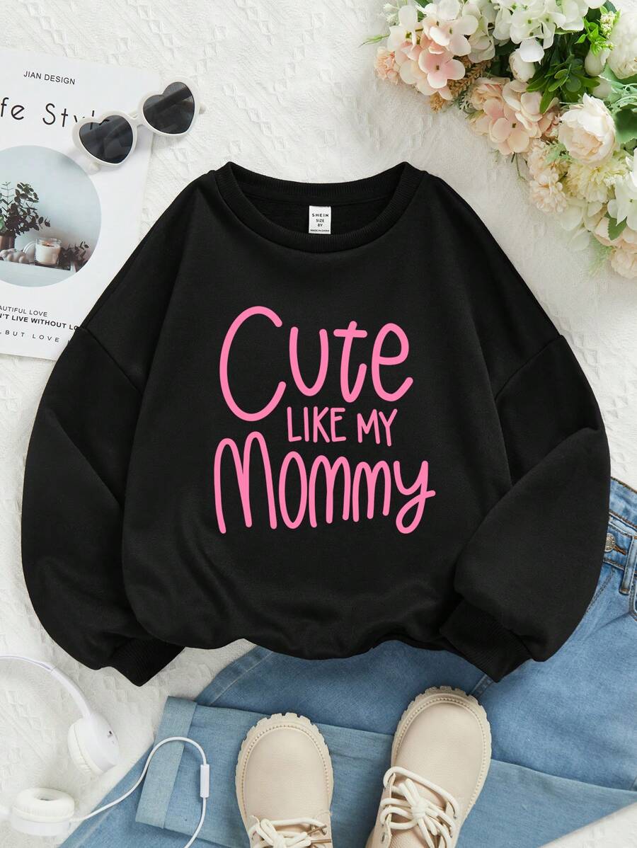 Tween Girl 1pc Slogan Graphic Drop Shoulder Thermal Lined Tissue Sweatshirt