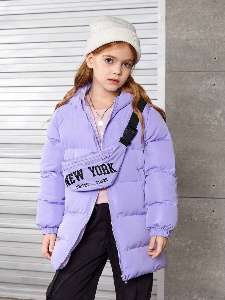 SHEIN Tween Girl 1pc Zipper Hooded Puffer Coat With Bag