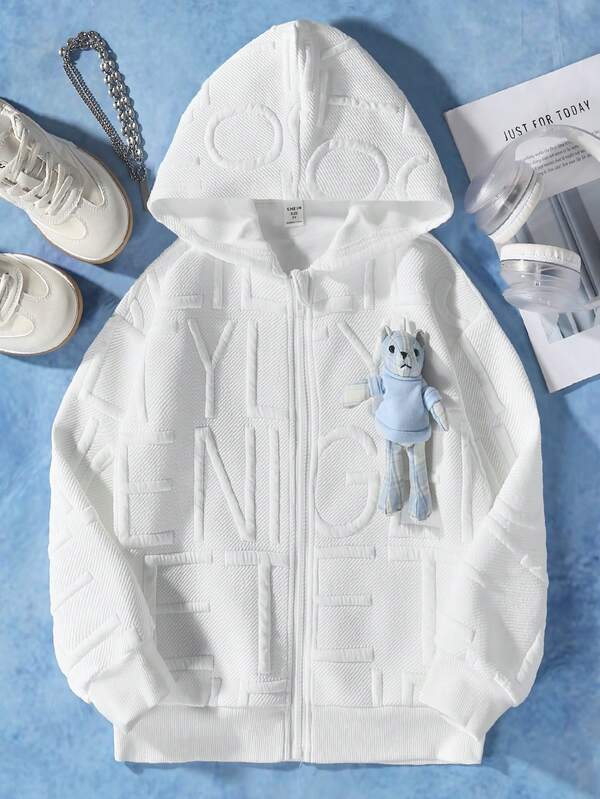 Tween Girl Bear Decor Zip Up Hooded Sweatshirt