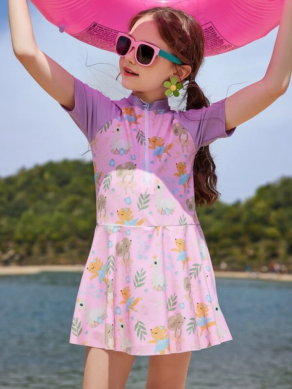 Tween Girl Cartoon Graphic One Piece Swimsuit
