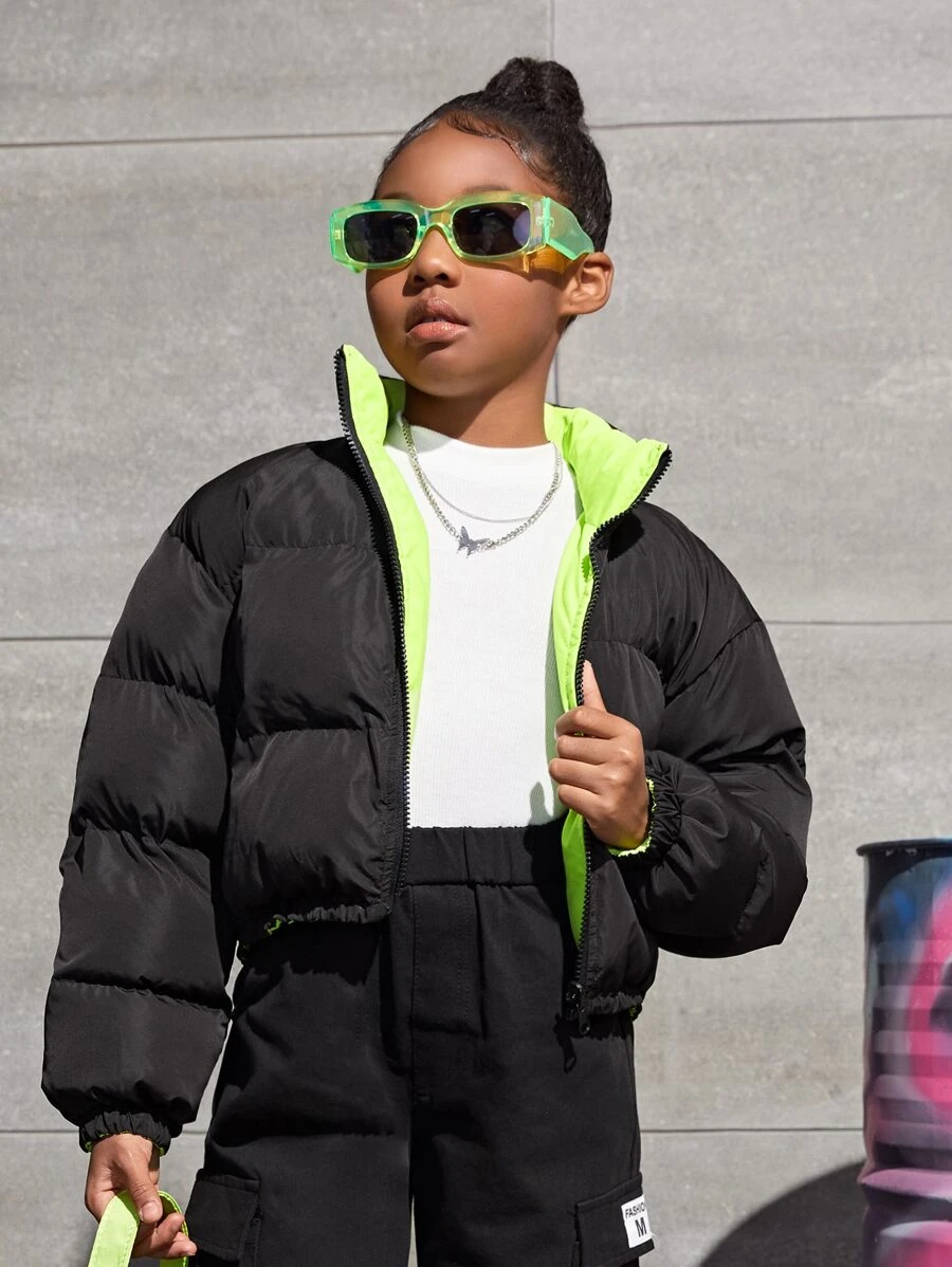 SHEIN Tween Girl Casual Solid Color Two-Way Wearable Bread Coat With Front Zipper And Small Turtleneck In Autumn And Winter
