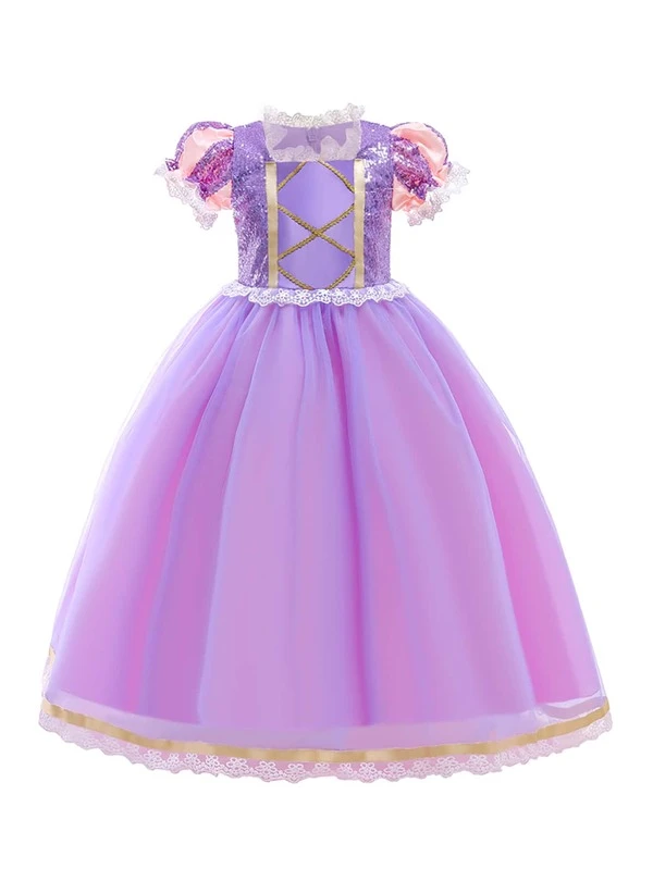 Tween Girl Contrast Sequin Mesh Hem Party Dress