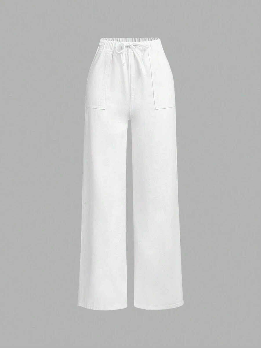 Tween Girl Drawstring Waist Wide Leg Jeans