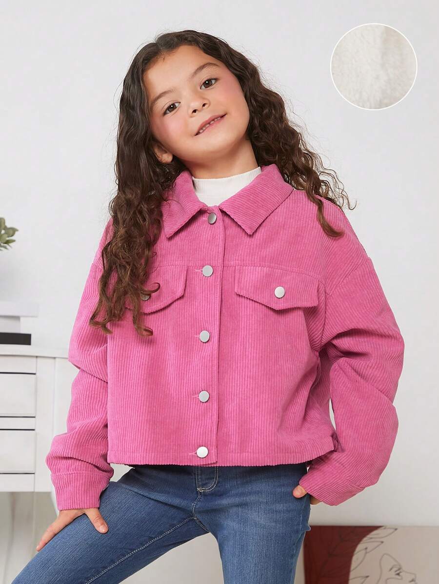 SHEIN Kids Cooltwn Tween Girl Flap Detail Drop Shoulder Corduroy Jacket