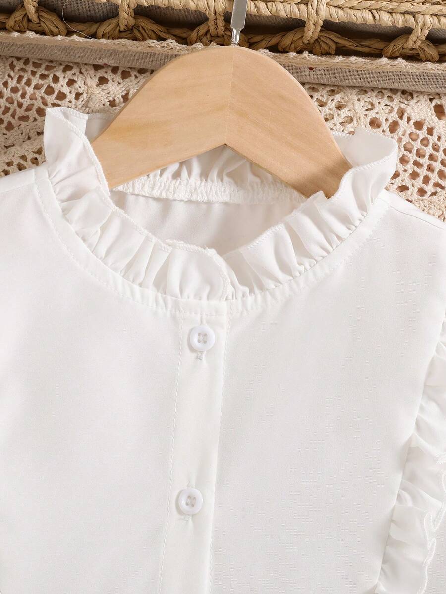 SHEIN Kids EVRYDAY Tween Girl Frill Trim Flare Sleeve Blouse