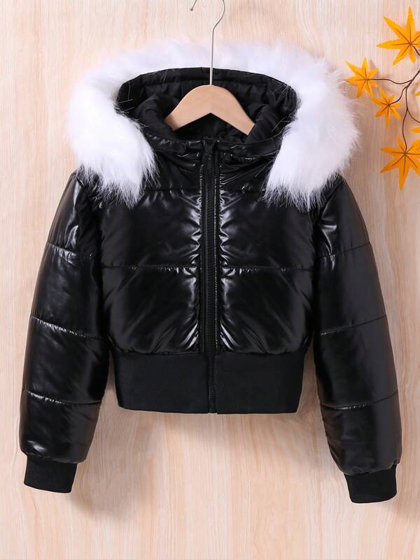 Tween Girl Fuzzy Trim Hooded Puffer Coat