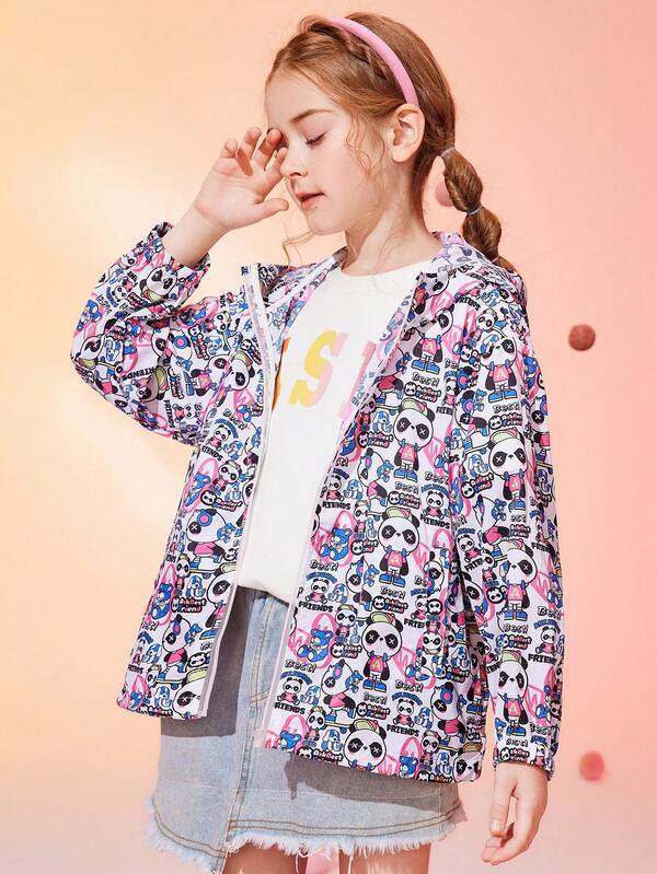 Tween Girl Letter & Cartoon Graphic Hooded Coat