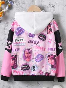 Tween Girl Letter & Figure Graphic Drop Shoulder Varsity Jacket