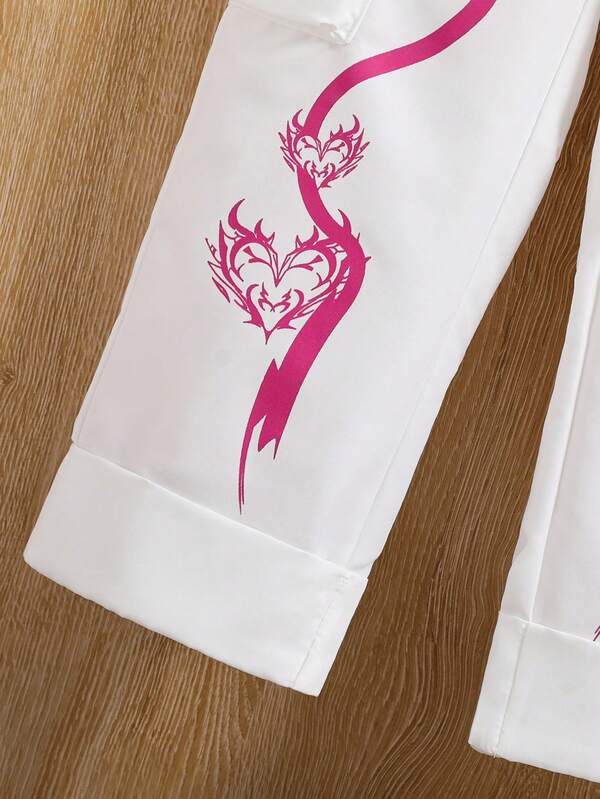 Tween Girl Letter Graphic Flap Pocket Side Cargo Pants