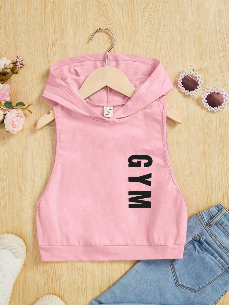 SHEIN Tween Girl Letter Graphic Hooded Sports Tank Top