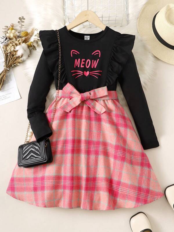 Tween Girl Letter Graphic Ruffle Trim Dress