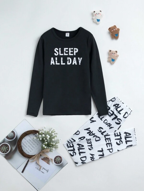 Tween Girl Letter Graphic Tee & Pants PJ Set