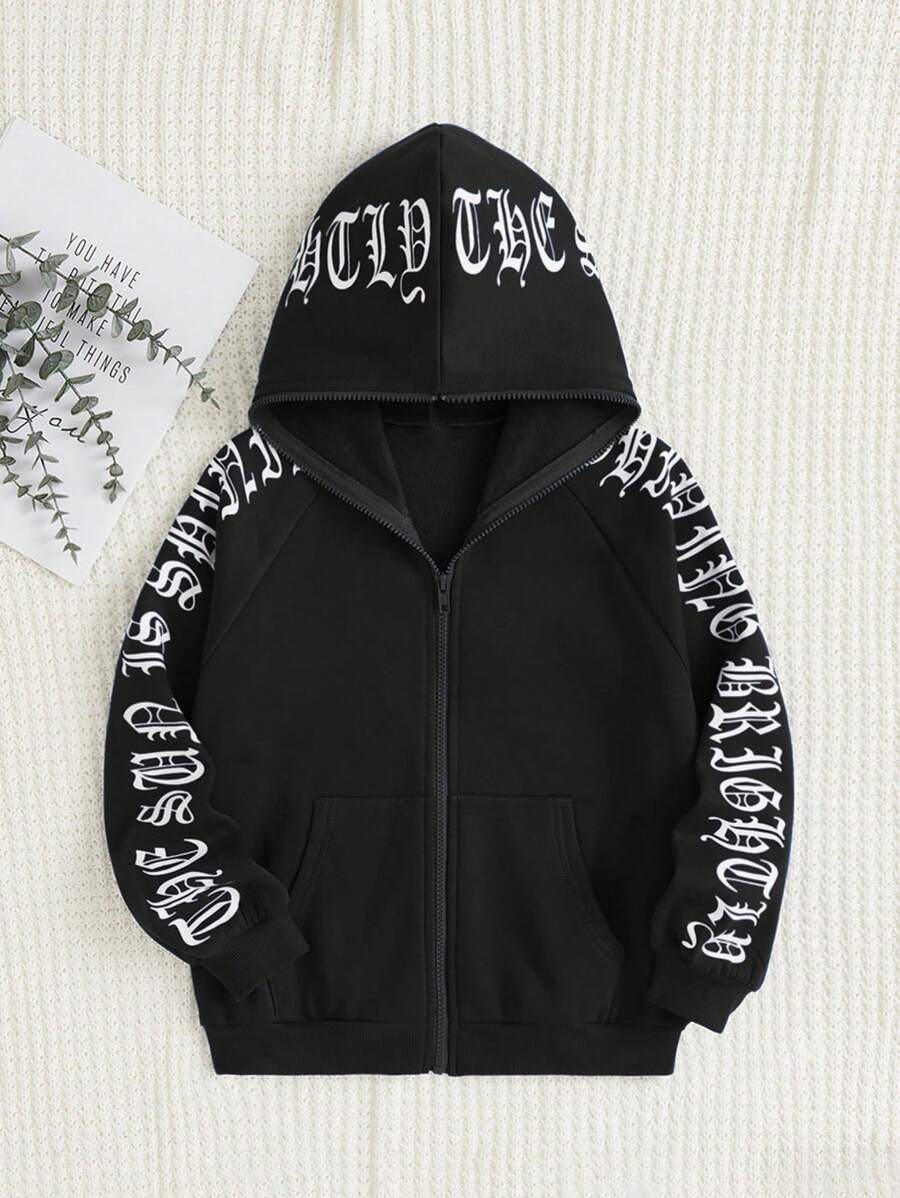 SHEIN Kids EVRYDAY Tween Girl Letter Graphic Zip Up Raglan Sleeve Hoodie