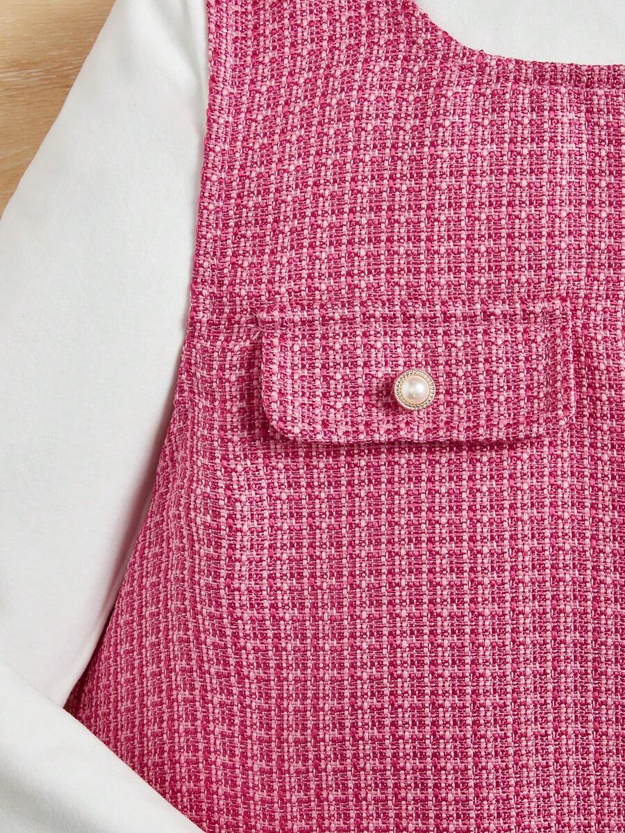 SHEIN Kids FANZEY Tween Girl Lettuce Trim Tee & Flap Detail Pleated Hem Dress