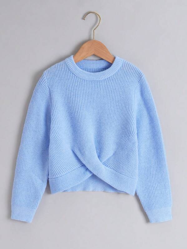 Tween Girl Ribbed Knit Crossover Hem Sweater