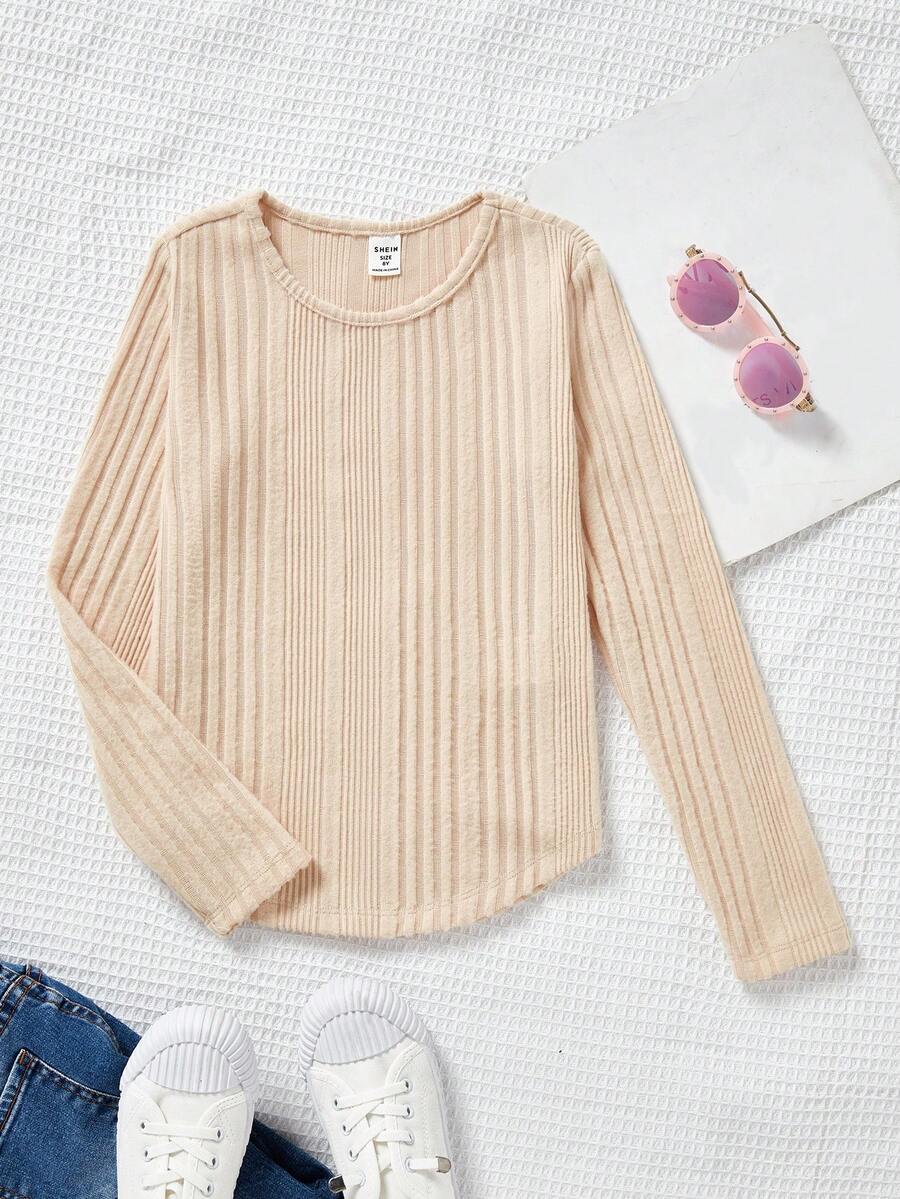 SHEIN Kids EVRYDAY Tween Girl Ribbed Knit Curved Hem Tee