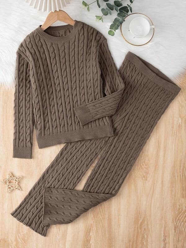 SHEIN Kids Nujoom Tween Girls' Casual Cable Knit Sweater Set