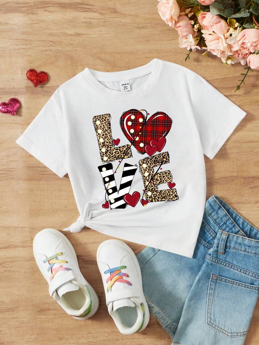 Tween Girls' Casual Minimalist Round Neck Short Sleeve T-Shirt Suitable For Summer