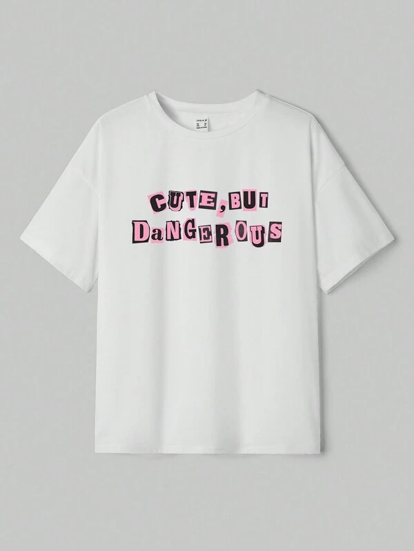 Tartagain Tween Girls' Casual Oversized T-Shirt With Letter Print, Suitable For Summer