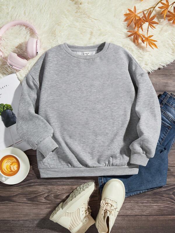 Tween Girls' Casual Solid Color Long Sleeve Round Neck Sweatshirt, Suitable For Autumn And Winter