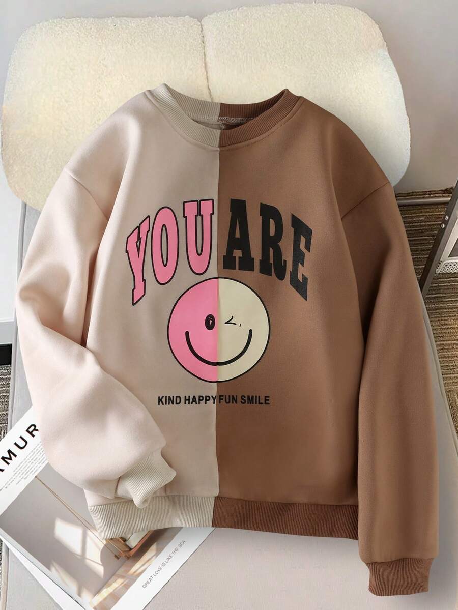 Tween Girls' Colorblock Cartoon Letter Print Sweatshirt