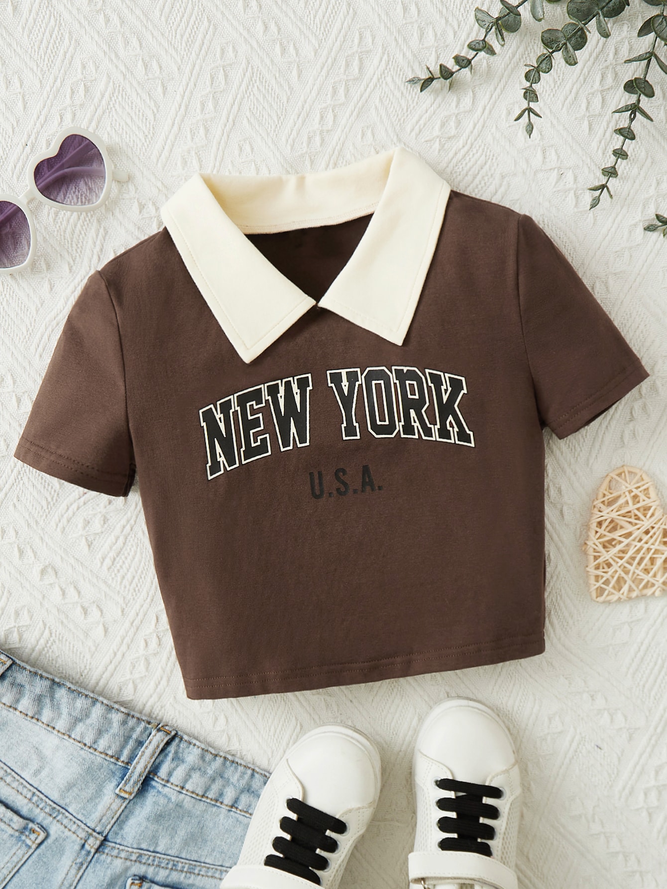 SHEIN Kids EVRYDAY Tween Girls' Knitted Casual Style Contrasting Color Collar T-Shirt With Letter Print, Suitable For Summer