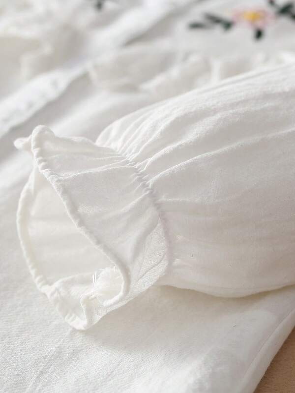 Tween Girls' Spring & Autumn Turn-Down Collar Floral Embroidery Long Sleeve Shirt, College Style