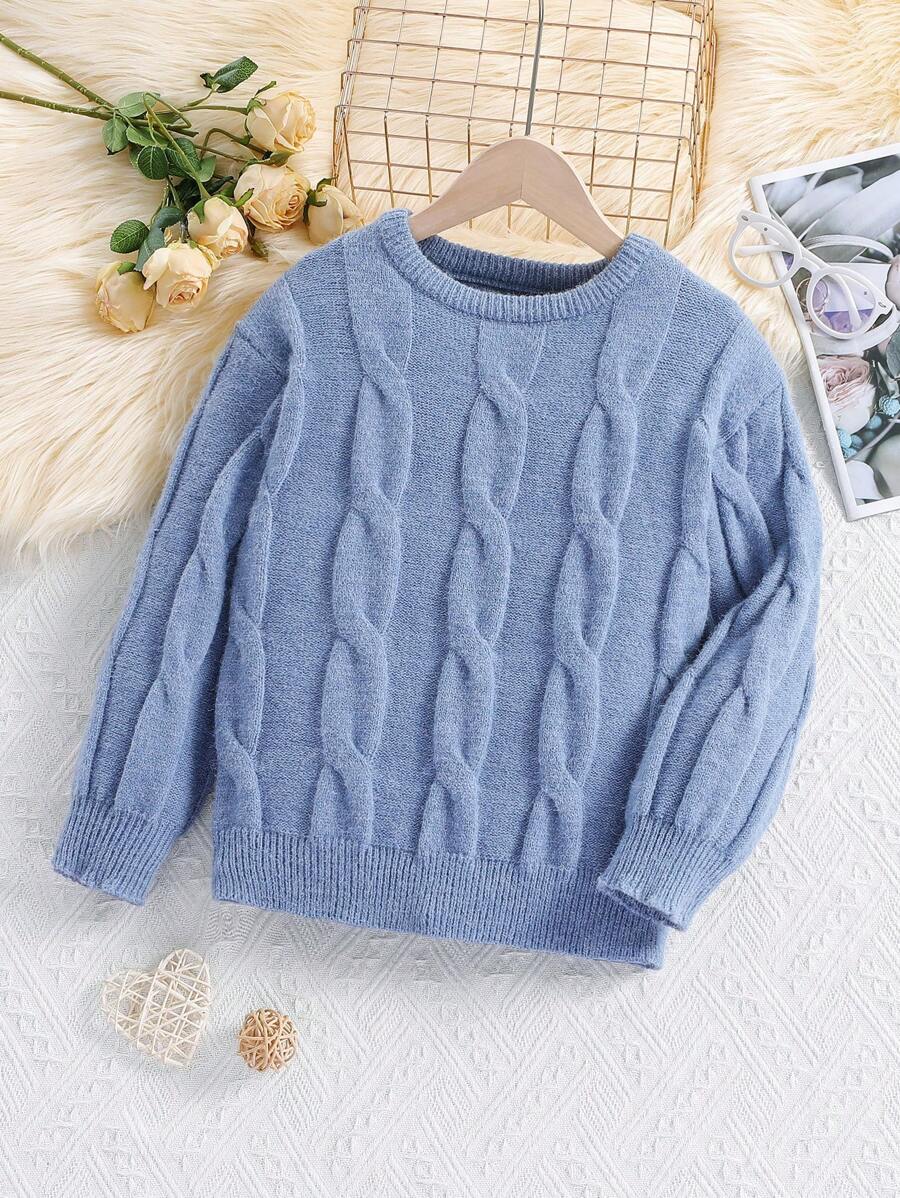 SHEIN Kids Nujoom Tween Girls Cable Knit Tissue Pom Pom Sweater