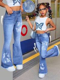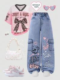 Tween Girls Fall Y2K Light Stonewashed High Waist Baggy Straight Leg Jeans With Butterfly Cute Bowknot Embroidered,Suitable For Daily Travel, Outdoor, Home, Brunch, Tea Party, Commute, Airport Wear,Girls Autumn Fall Clothes Outfits,Tween Girl Back To School Homecoming Kawaii Clothes, Bow Jeans, Jeans With Bows, Bowknot Jeans, Pink Bow Jeans Baggy Jeans For Girls,Baggy Jeans With Bows, Bow Embroidered Jeans Winter #2 Bestseller