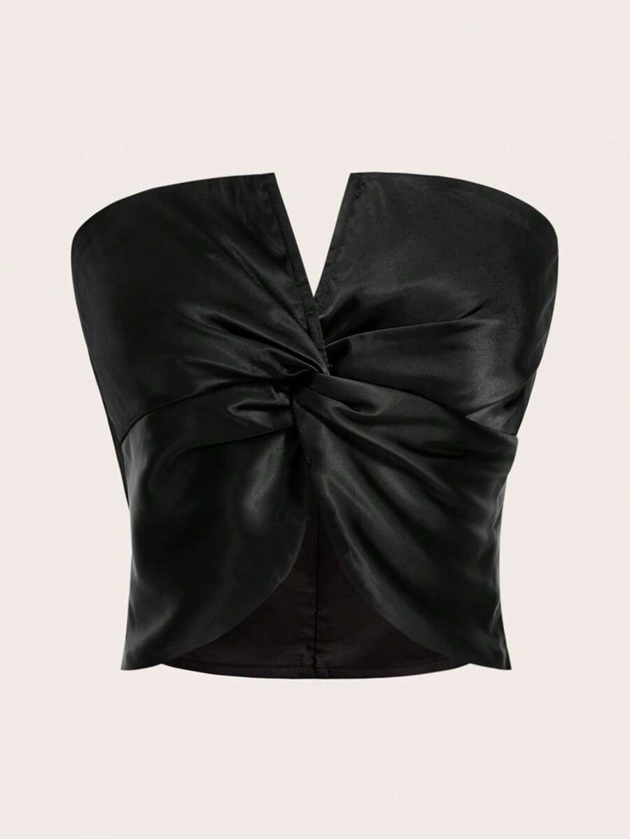 SHEIN MOD Twist Front PU Leather Tube Top
