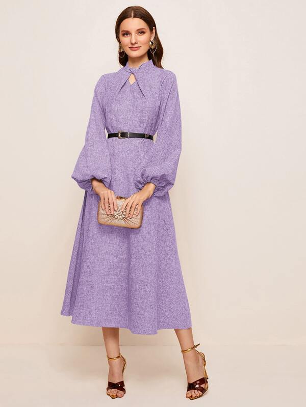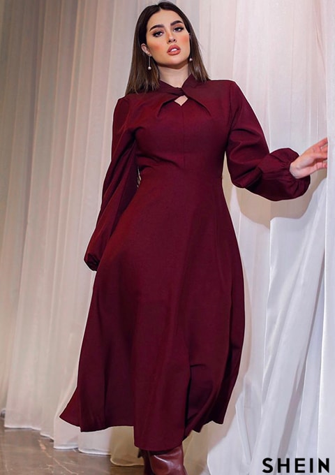 SHEIN Mulvari Twist Neck Lantern Sleeve Flare Dress