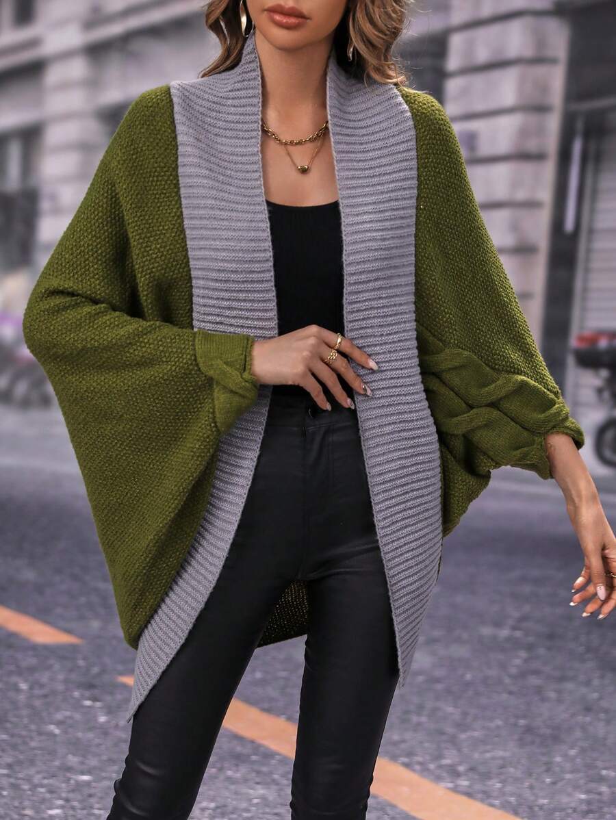SHEIN LUNE Two Tone Batwing Sleeve Open Front Cardigan