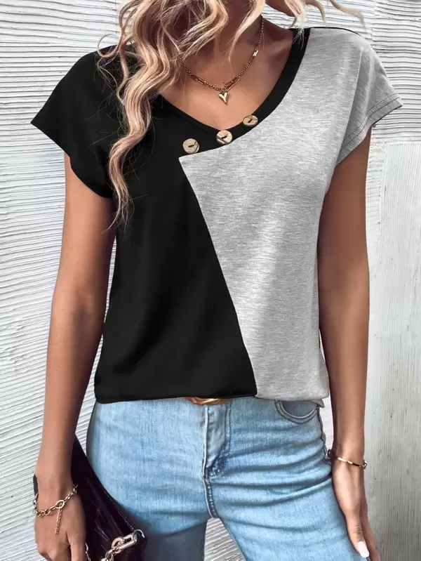 SHEIN LUNE Two Tone Button Detail Dolman Sleeve Tee