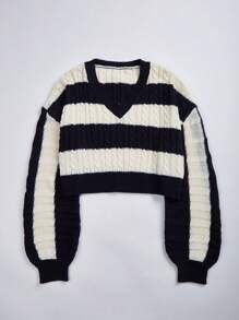 SHEIN Essnce Two Tone Cable Knit Drop Shoulder Sweater