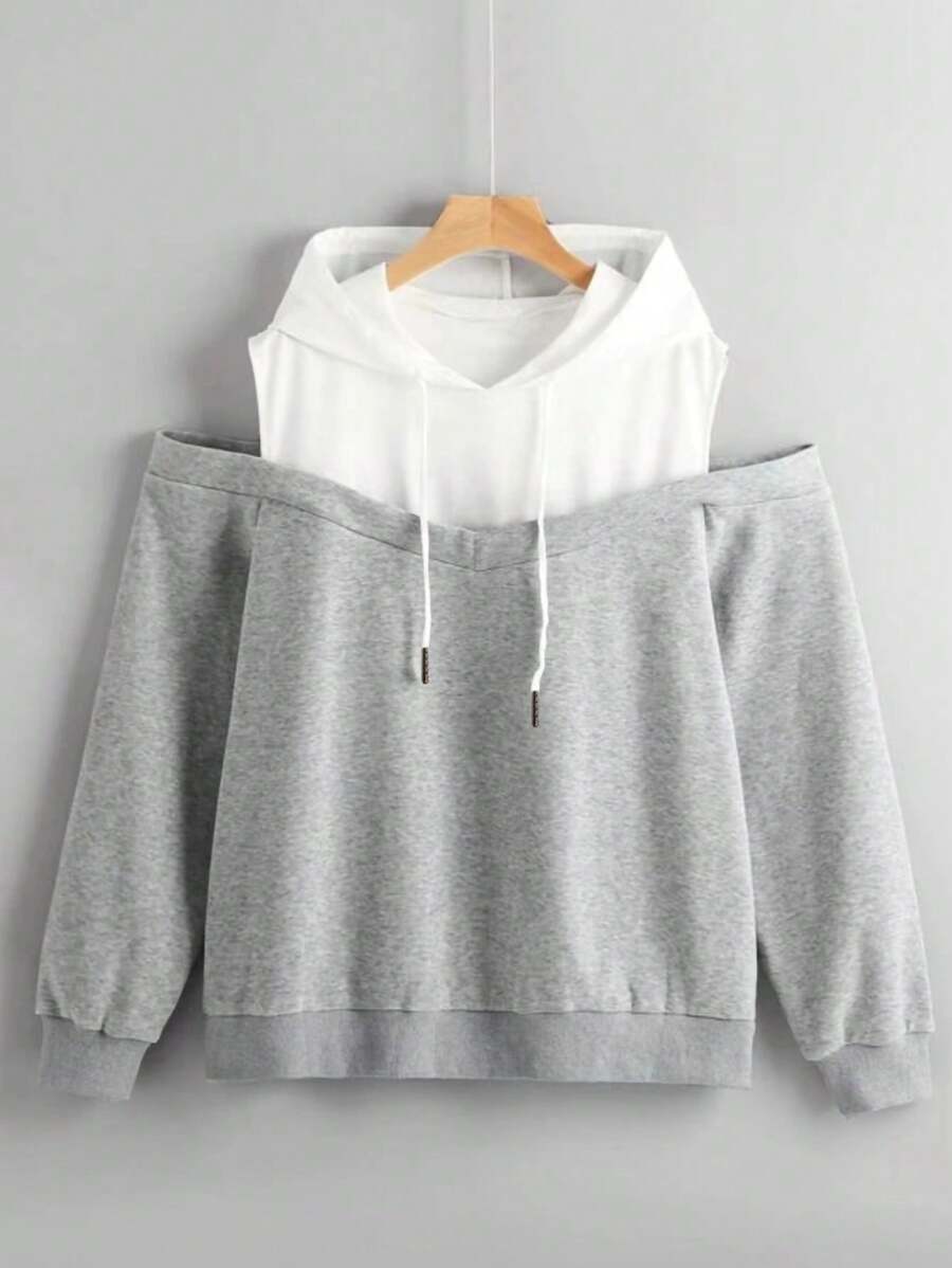 SHEIN Frenchy Two Tone Cold Shoulder Drawstring Hoodie