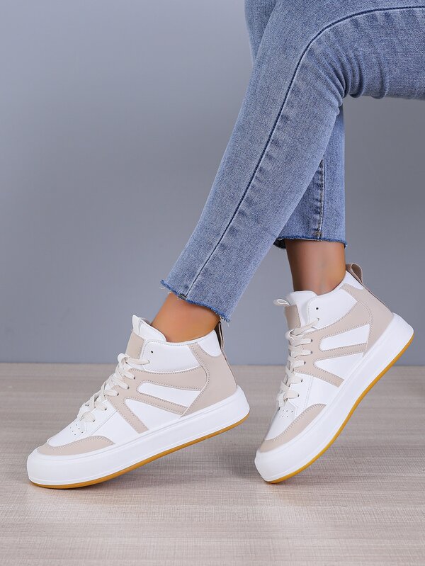 Two Tone High Top Lace-up Front Skate Shoes