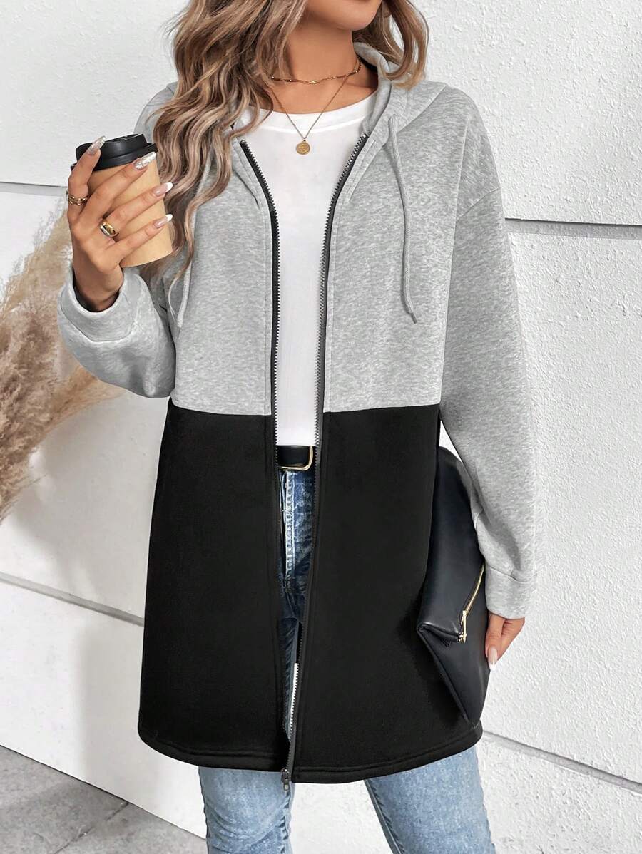 SHEIN LUNE Two Tone Hooded Jacket With Zipper And Drawstring