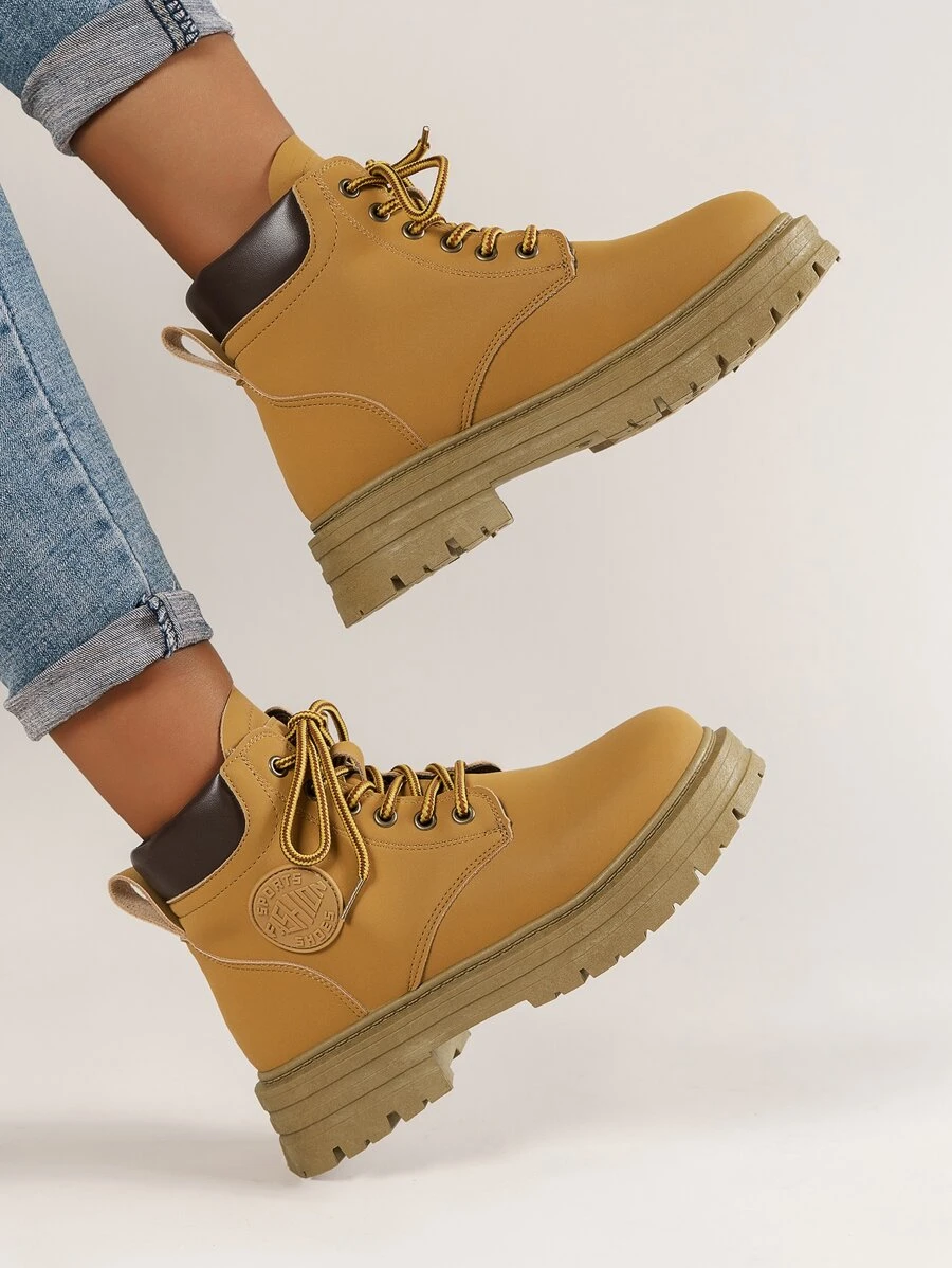 Unisex Boots With Letter Stickers Decoration, Lace Up Front Combat Boots