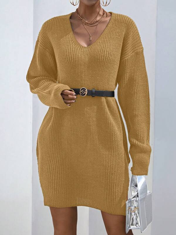 SHEIN Essnce V-Neck Drop Shoulder Sweater Dress Without Waist Belt