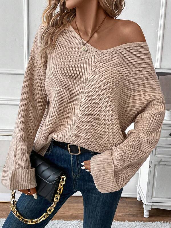 SHEIN LUNE V Neck Drop Shoulder Sweater