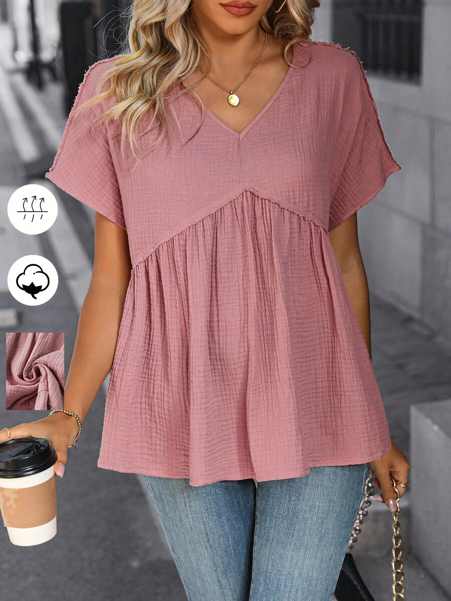 SHEIN LUNE V-Neck Short Sleeve Blouse